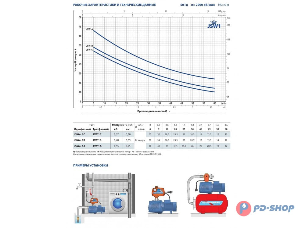 ОБЛАСТЬ ПРИМЕНЕНИЯ И УСТАНОВКА НАСОСА СЕРИИ PEDROLLO JSW1:
